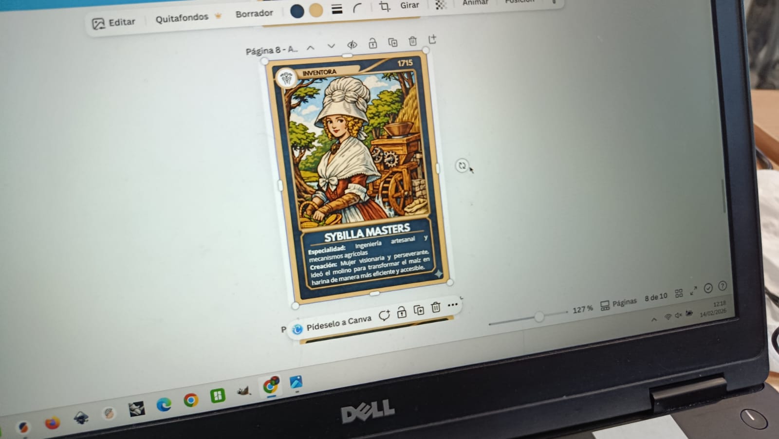 Sofía, together with her teammates Elisa, Blanca and Carolina, created a card dedicated to Sybilla Masters, a pioneer in industrial innovation.