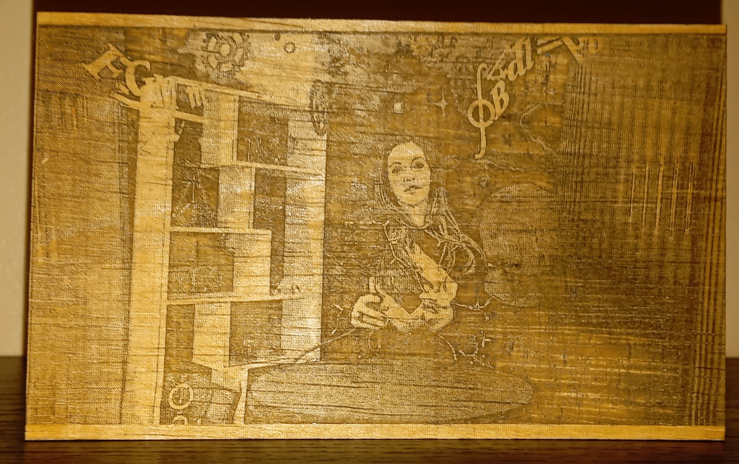Laser-cut/woodcut room components to form the background environment of some scenes.