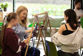 Team 2 created the AstroFelt — a lamp that brings together ancient and modern techniques. They started from traditional wool felting and combined it with laser cutting and LED lighting.